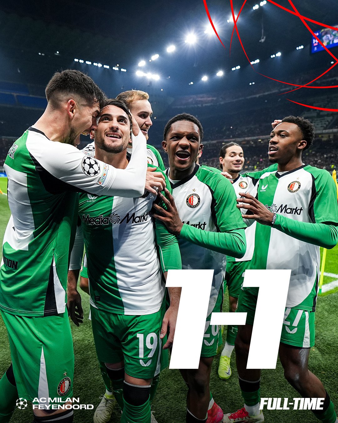 El dia martes se jugaron 4 partidos en la ciudad de milan en el estadio del san siro se enfrentaron el AC Milan vs Feyenoord de rotterdam empatando (1-1) pero en el global fue (1-2) a favor de los neerlandeses con goles de ambos equipos para los rossoneris de santiago gimenez en el minuto 1 del primer tiempo y para el orgullo de paises bajos de julian carranza avanzando a los octavos de final enfrentandose a otro equipo de italia que es el inter de milan.