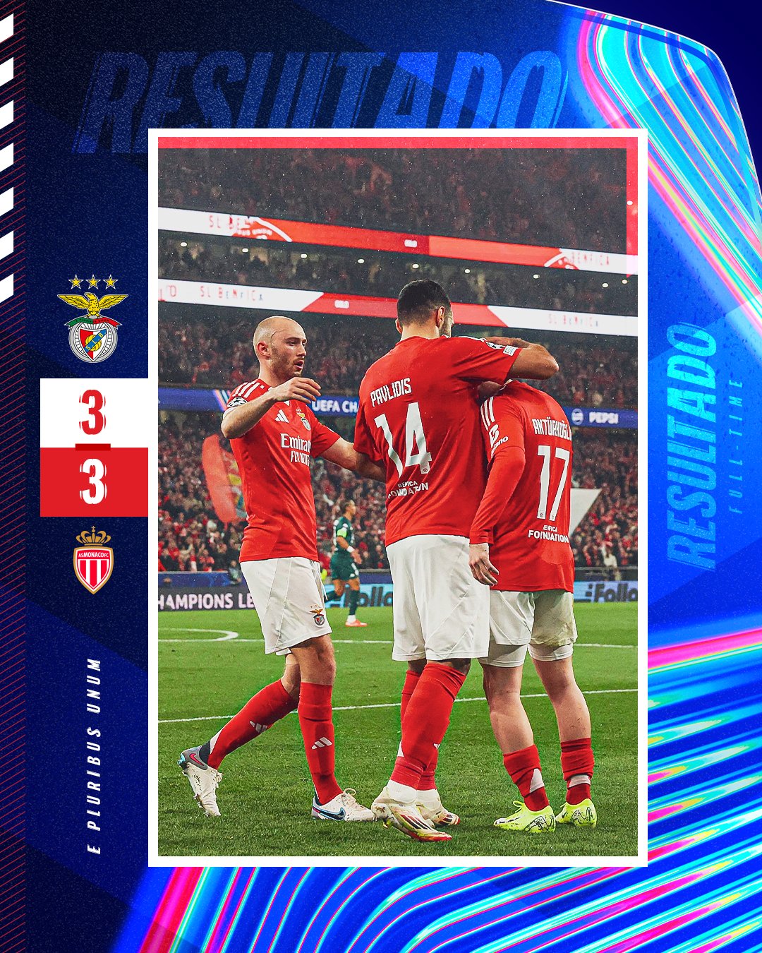 En lisboa en el estadio da luz se enfrentaron en un dramatico partido entre el benfica vs as monaco empatado por (3-3), pero avanzo las aguilas por el global (4-3), los goles para los benfiquistas fueron de Kerem Aktürkoğlu en el minuto 22, Vangelis Pavlidis en el minuto 76 de penalti y de Orkun Kökçü en el minuto 84, mientras que para los principados fueron de takumi minamino en el minuto 32, eliesse ben seghir en el minuto 51 y de George Ilenikhena en el minuto 81.